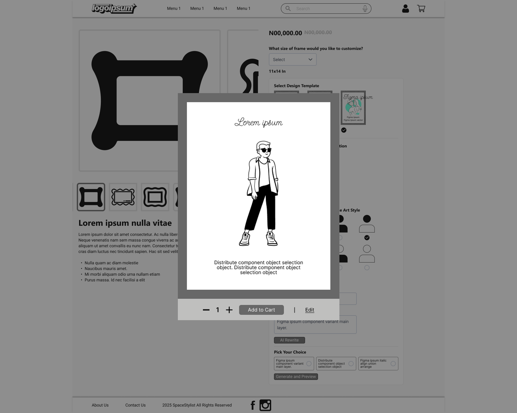 These wireframes formed the foundational structure for the redesigned customization flow. The emphasis on clarity, controlled progression, and supportive AI interactions helped ensure that users would feel guided, confident, and excited throughout their customization experience on SpaceStylist.