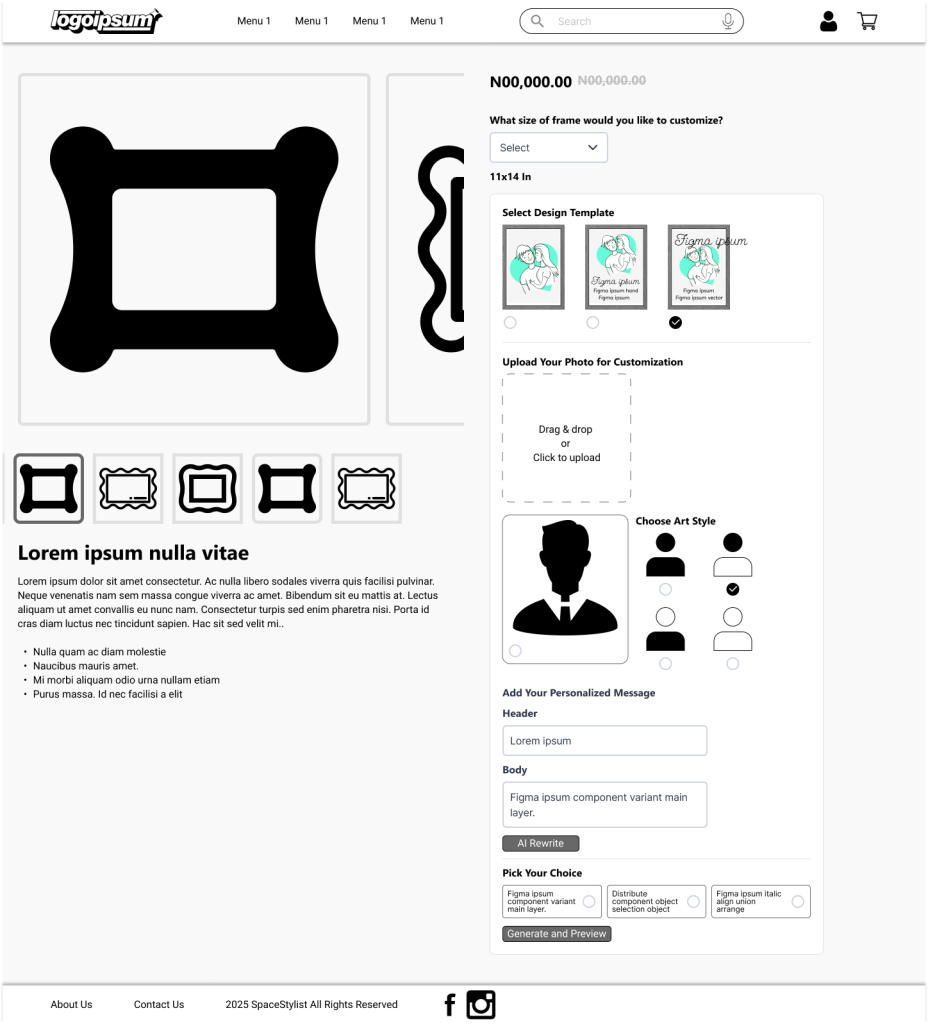 This project focused on a critical redesign of the SpaceStylist product page for personalized gift items. The initiative was driven by direct customer feedback indicating significant frustration with the existing product customization platform, specifically citing its complexity, excessive steps, and lack of creative guidance.
