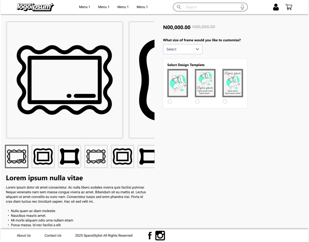 These wireframes formed the foundational structure for the redesigned customization flow. The emphasis on clarity, controlled progression, and supportive AI interactions helped ensure that users would feel guided, confident, and excited throughout their customization experience on SpaceStylist.